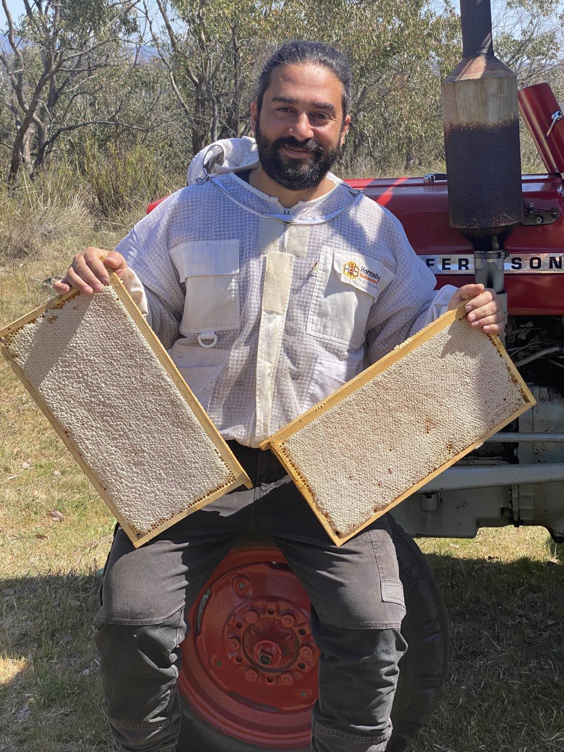 Joshua has caught the bee addiction. After lending his hand in the harvesting of honey, his interest has turned into a passion, and he has become an integral part of the Honeybarn team.